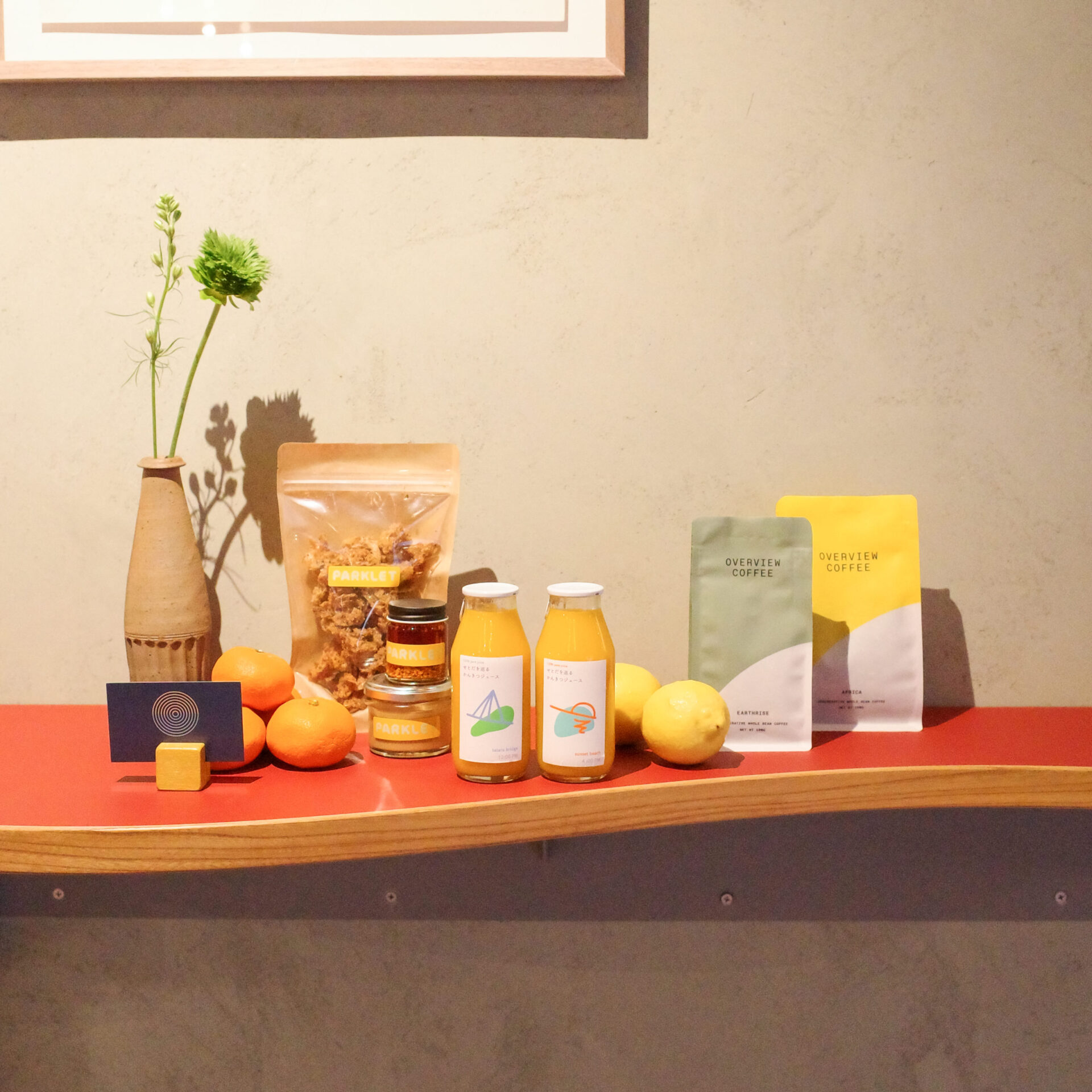 SOIL Nihonbashiとしては、SOIL ブラザーである1号店の@soil.setoda より採れたての瀬戸田みかんとレモン、柑橘ジュース、オーガニックレモングラスティーなどローカルの魅力